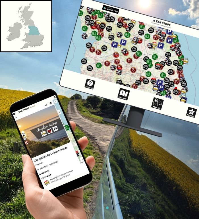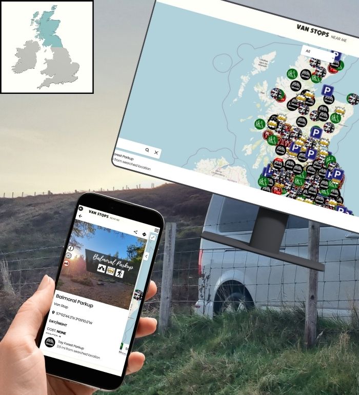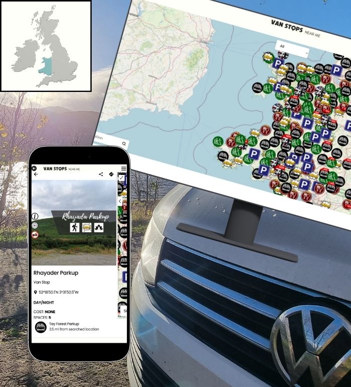 Our easy to use app (apple) (android) features an interactive map that pinpoints nearby campervan overnights both free & paid.